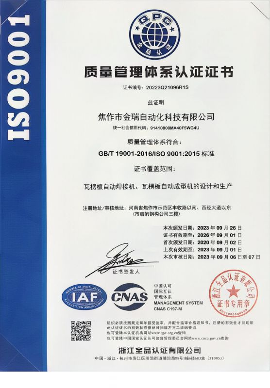 質(zhì)量管理體系認(rèn)證證書(英文版)