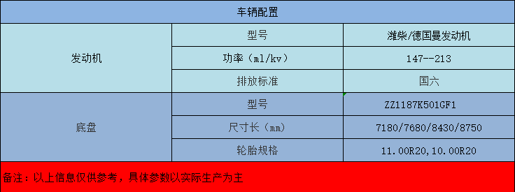 重汽德國曼發(fā)動機,HOWO變速箱,6.5T前橋,11T后橋
