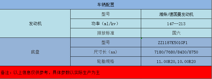 重汽德國(guó)曼發(fā)動(dòng)機(jī),HOWO變速箱,6.5T前橋,11T后橋