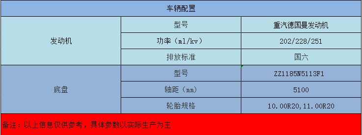 重汽德國曼發(fā)動機,HOWO變速箱,5-7T前橋,7-16T后橋