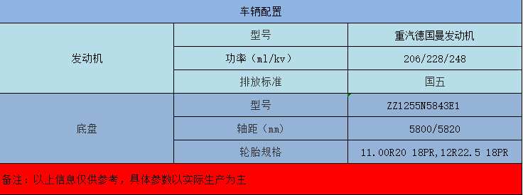 重汽德國曼發(fā)動(dòng)機(jī),HOWO變速箱,5-7T前橋,7-16T后橋